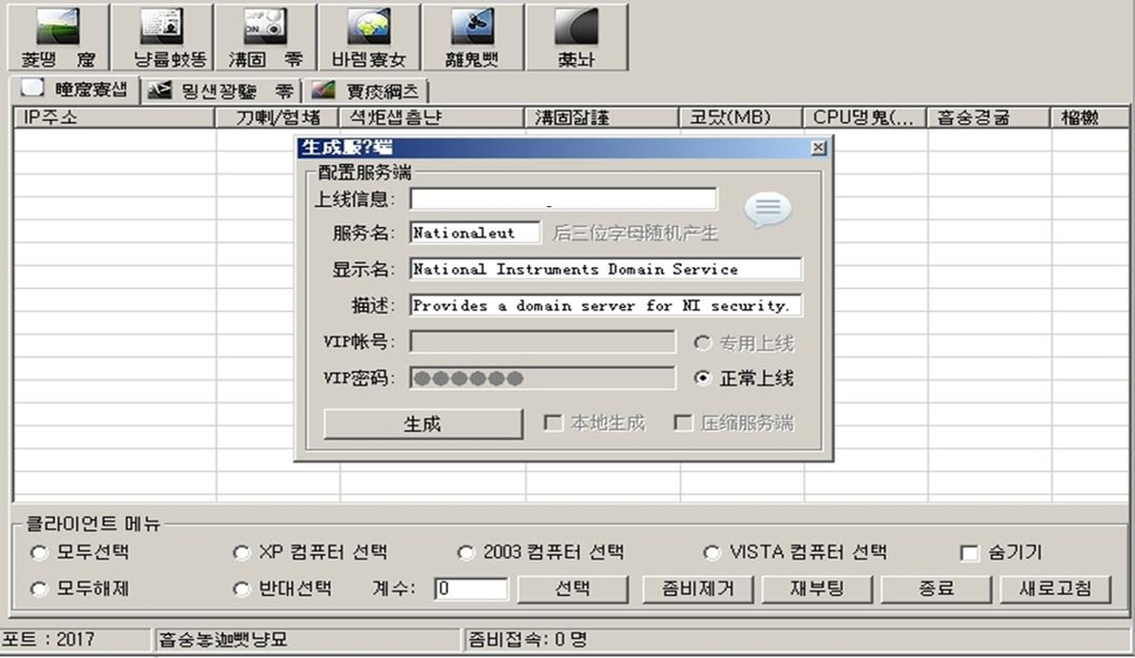이 툴만 있으면 반대로 국내에 좀비 PC를 찾아내는 것이 더 쉬울 듯 합니다. 내주변 컴퓨터가 악성코드 DDoS분산서비스거부공격에 감염되어 좀비PC가 됐었는지 확인치료해보세요. 흔한 ddos어택프로그램으로 좀비를 이용하여 ddos공격을 하는 프로그램 흔히들아시는 어택툴입니다.
