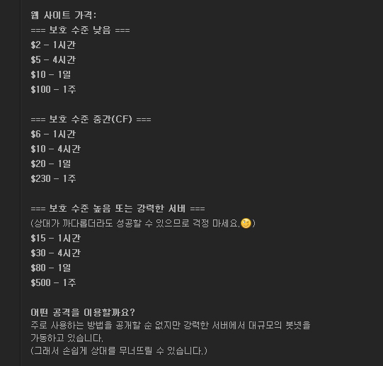 어드민해킹 및 디도스공격 의뢰 받습니다. 23일 관련 업계에 따르면 디도스 공격 대행이 기승을 부리고 있는 것으로 나타났다. 그런 단순 공격으로 서버가 살아나지 않는다면 물론.